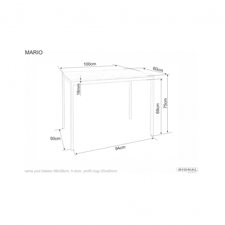 Stół MARIO - blat: płyta laminowana, stelaż: metal,