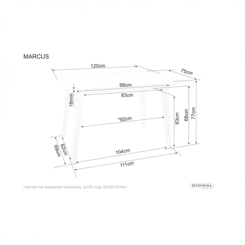 Stół MARCUS - blat: MDF + okleina PVC, stelaż: drewno,