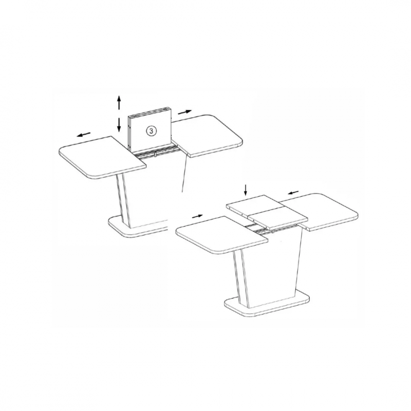 Wkładka jest składana na pół i chowana w nodze stołu.
