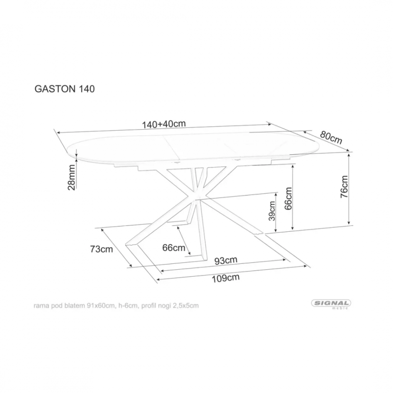 Stół rozkładany GASTON 140 - blat: ceramika, stelaż: metal,