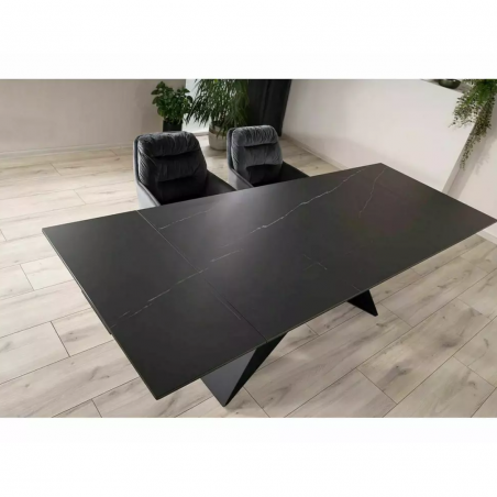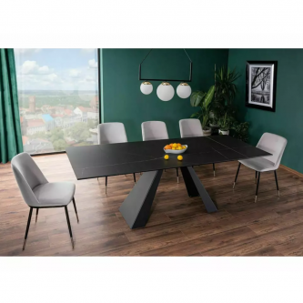 Stół rozkładany SALVADORE - blat: szkło hartowane + włoska ceramika SAHARA NOIR, stelaż: metal,