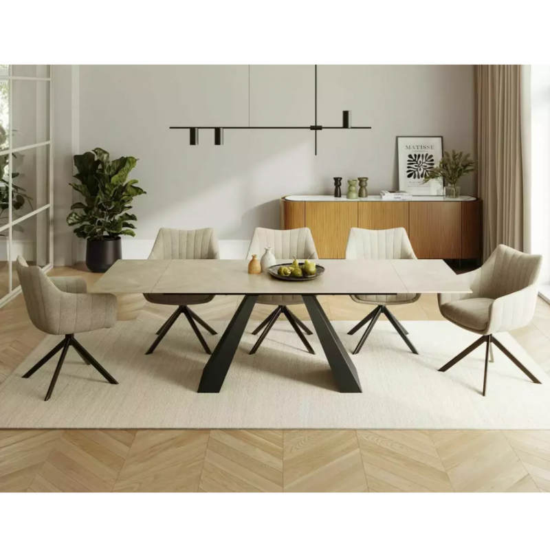 Stół rozkładany SALVADORE - blat: szklo hartowane + ceramika DIAMOND CREAM, stelaż: metal,