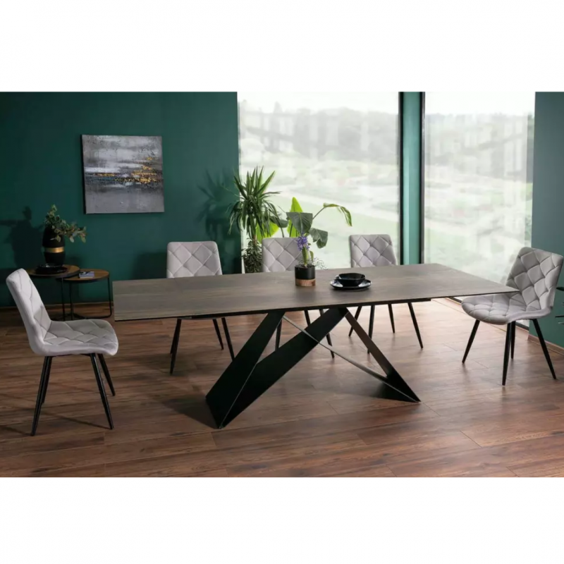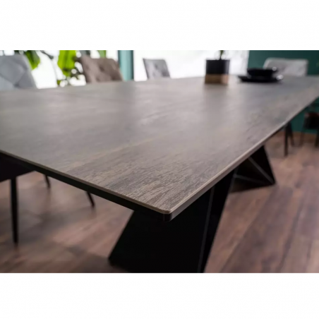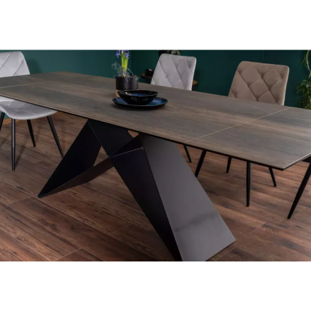 Stół rozkładany WESTIN - blat: szkło hartowane + hiszpańska ceramika LEGNO, efekt drewna, stelaż: metal,