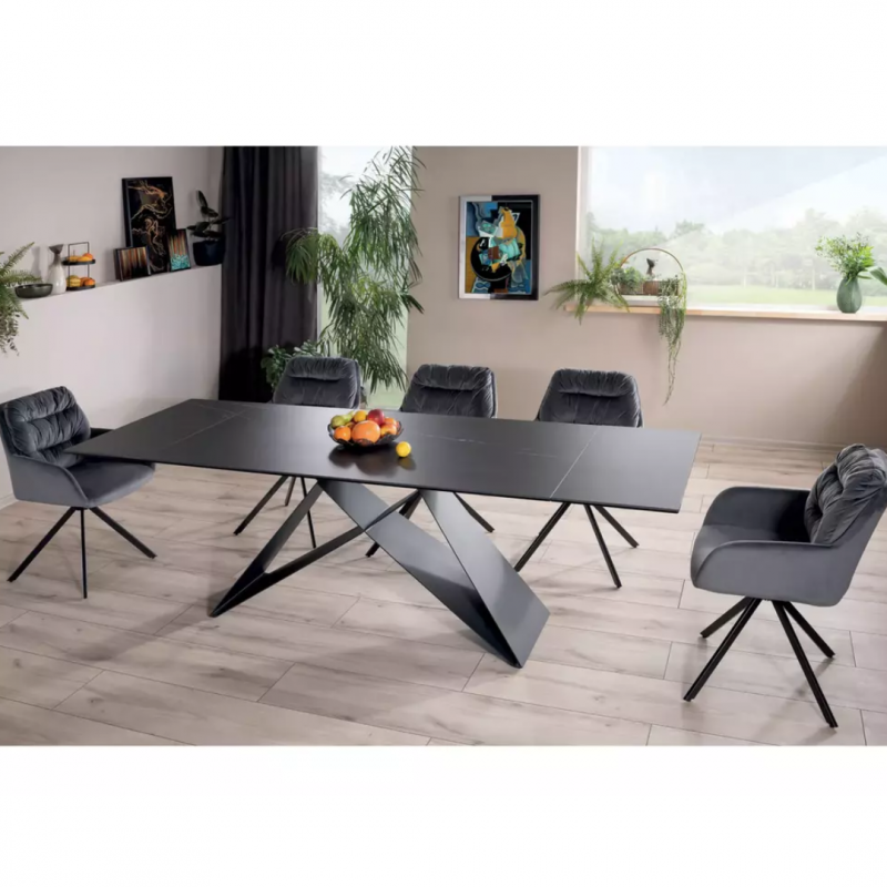 Stół rozkładany WESTIN - blat: szkło hartowane + włoska ceramika Sahara SAHARA NOIR, stelaż: metal,