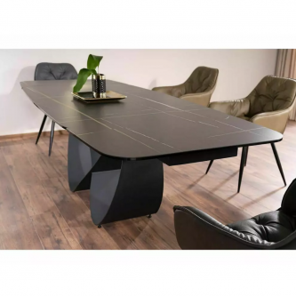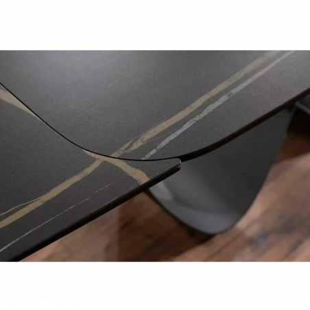 Stół rozkładany INFINITY - blat: szkło hartowane + hiszpańska ceramika, AZARIO BLACK, stelaż: metal,
