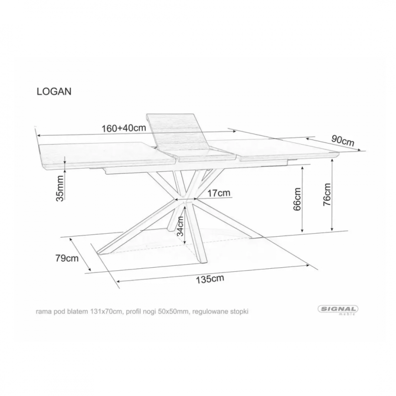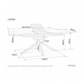 Stół rozkładany LOGAN Ceramic - blat: MDF + ceramika, stelaż: metal,