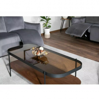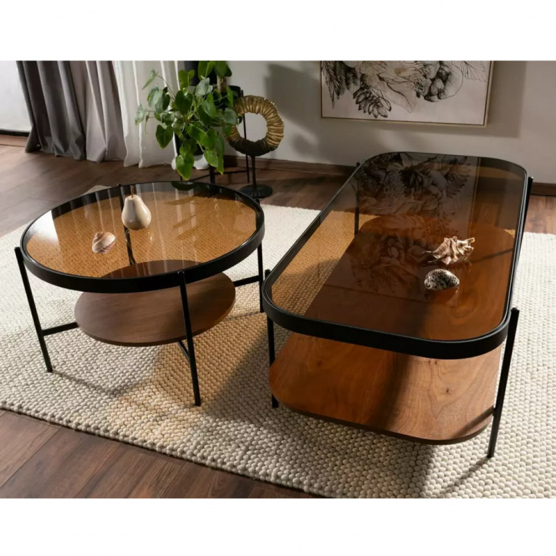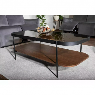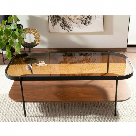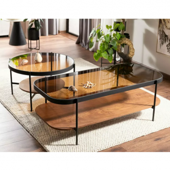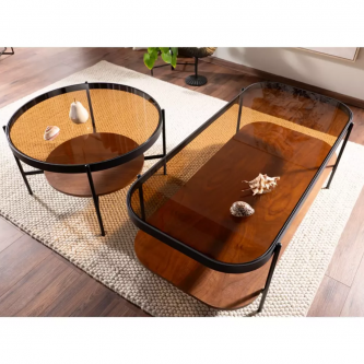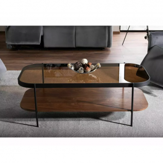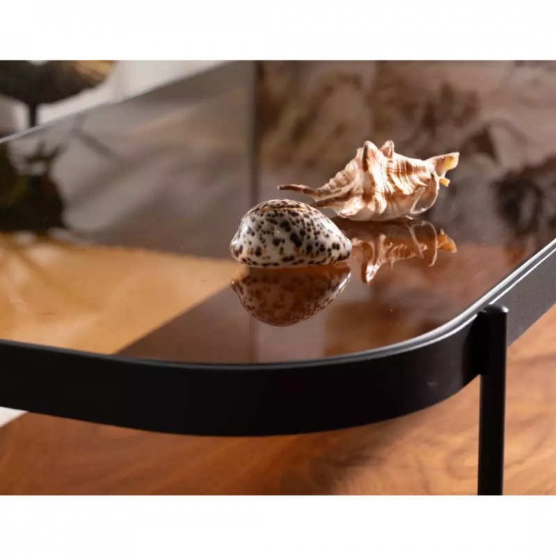 Ława PRIMA A - blat: szkło hartowane bursztynowe + MDF + okleina naturalna, stelaż: metal,
