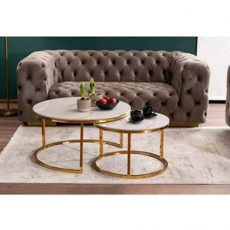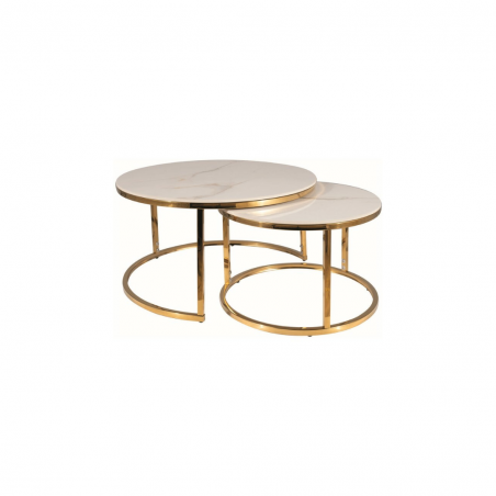 Wymiary mniejszego stolika: średnica 60; wysokość: 38cm.
