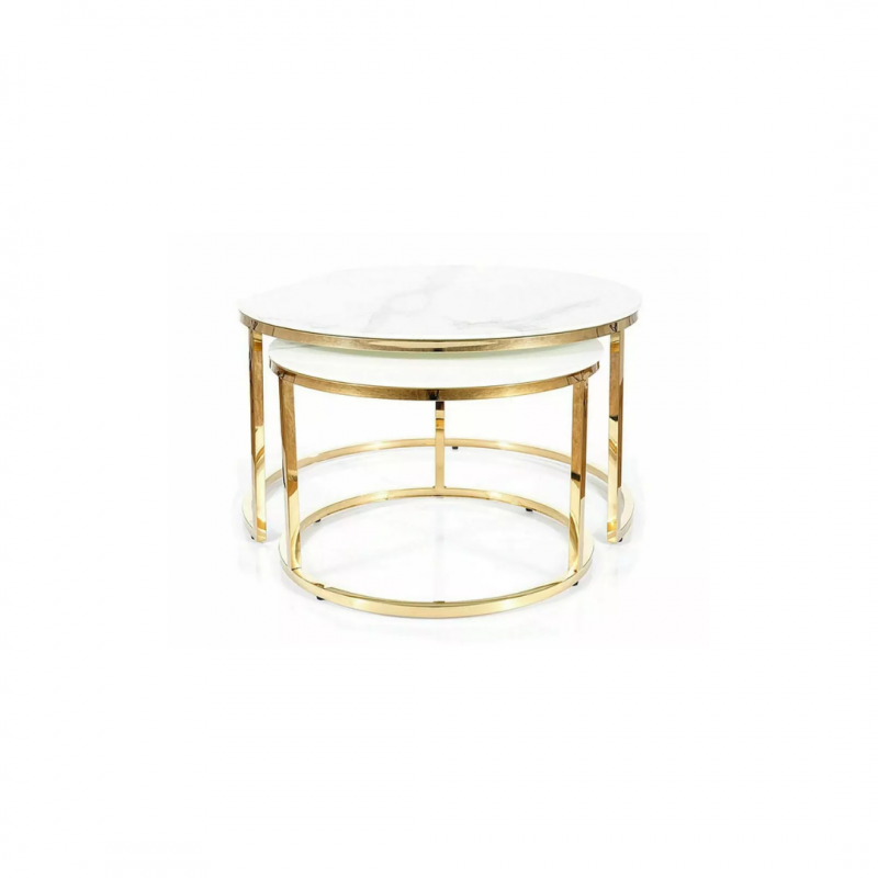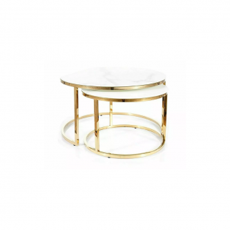 Wymiary mniejszego stolika: średnica 60; wysokość: 40cm.